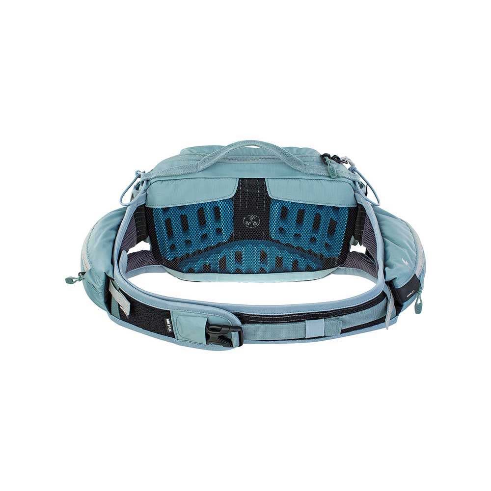 EVOC HIP PACK PRO 3l E-RIDE to duża, zaawansowana technologicznie torba - saszetka biodrowa oferująca zoptymalizowaną wentylację pleców. Idealna podczas krótszych przejażdżek. Dzięki systemowi VENTI FLAP można indywidualnie regulować odległość systemu od pleców i wentylację wzdłuż tylnego panelu, zapewnia to doskonałe dopasowanie do ciała oraz świetną wentylację. To doskonała alternatywa dla małych plecaków, która sprawdzi się nawet na przełajowych trasach. Obszerny pas biodrowy zapewnia komfort noszenia oraz utrzymuję "nerkę" na właściwym miejscu.