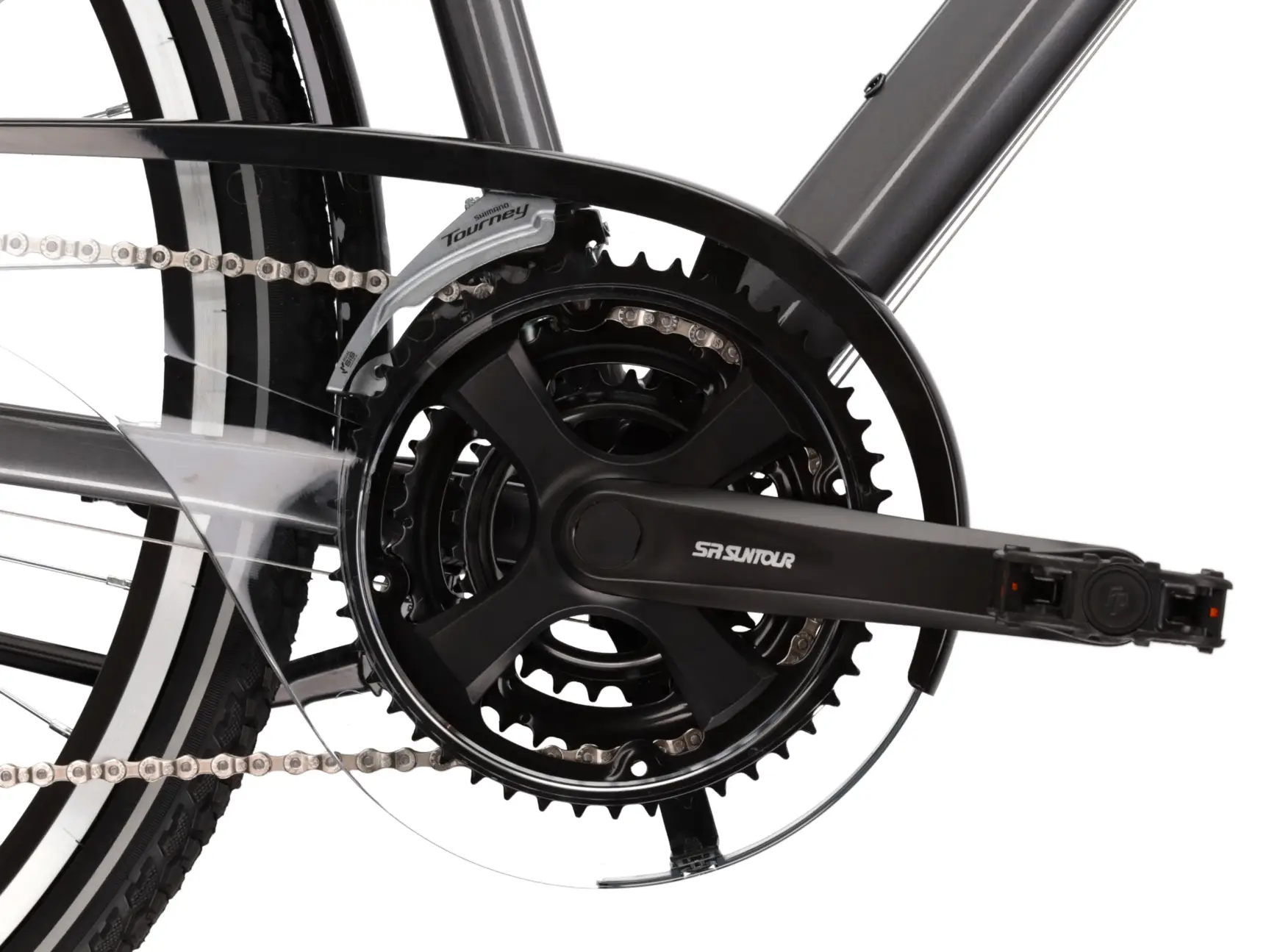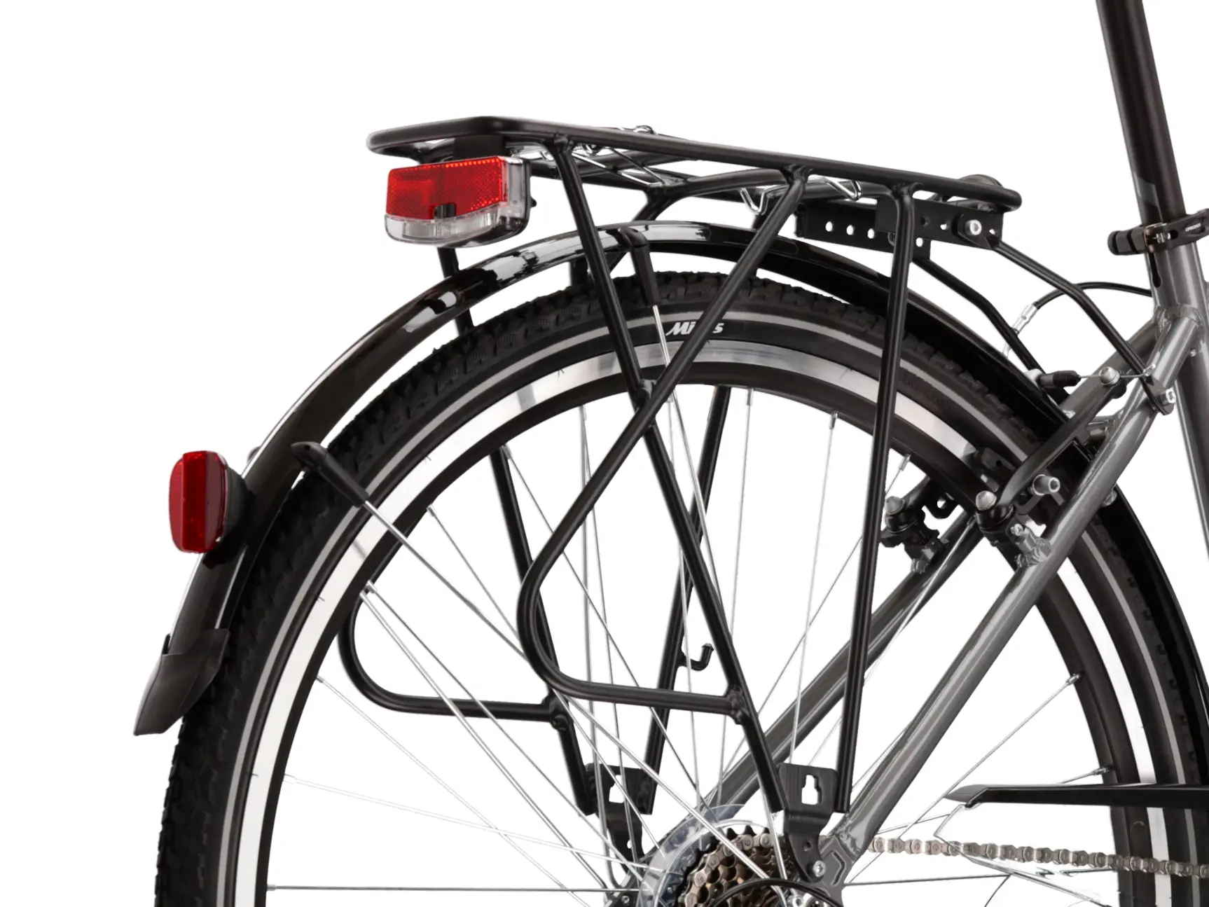 W rowerze trekkingowym nie mogło zabraknąć solidnego i stabilnego bagażnika. Umożliwia on przewożenie niezbędnego ekwipunku, a także nie będzie problemem montaż na nim dodatkowych sakw. Do kompletu trafił również system pełnych błotników, który zapewnia doskonałą ochronę przed błotem.