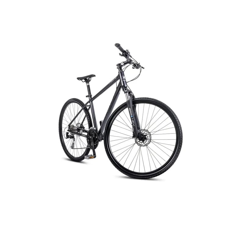 Komfort użytkowania zwiększa także amortyzowany widelec SR Suntour NEX DS o skoku 63 mm. Element ten doskonale sprawdza się podczas pokonywania nierówności, doskonale tłumiąc drgania generowane podczas jazdy. Dzięki temu docenisz przyjemność jazdy w mieście, jak i poza nim.