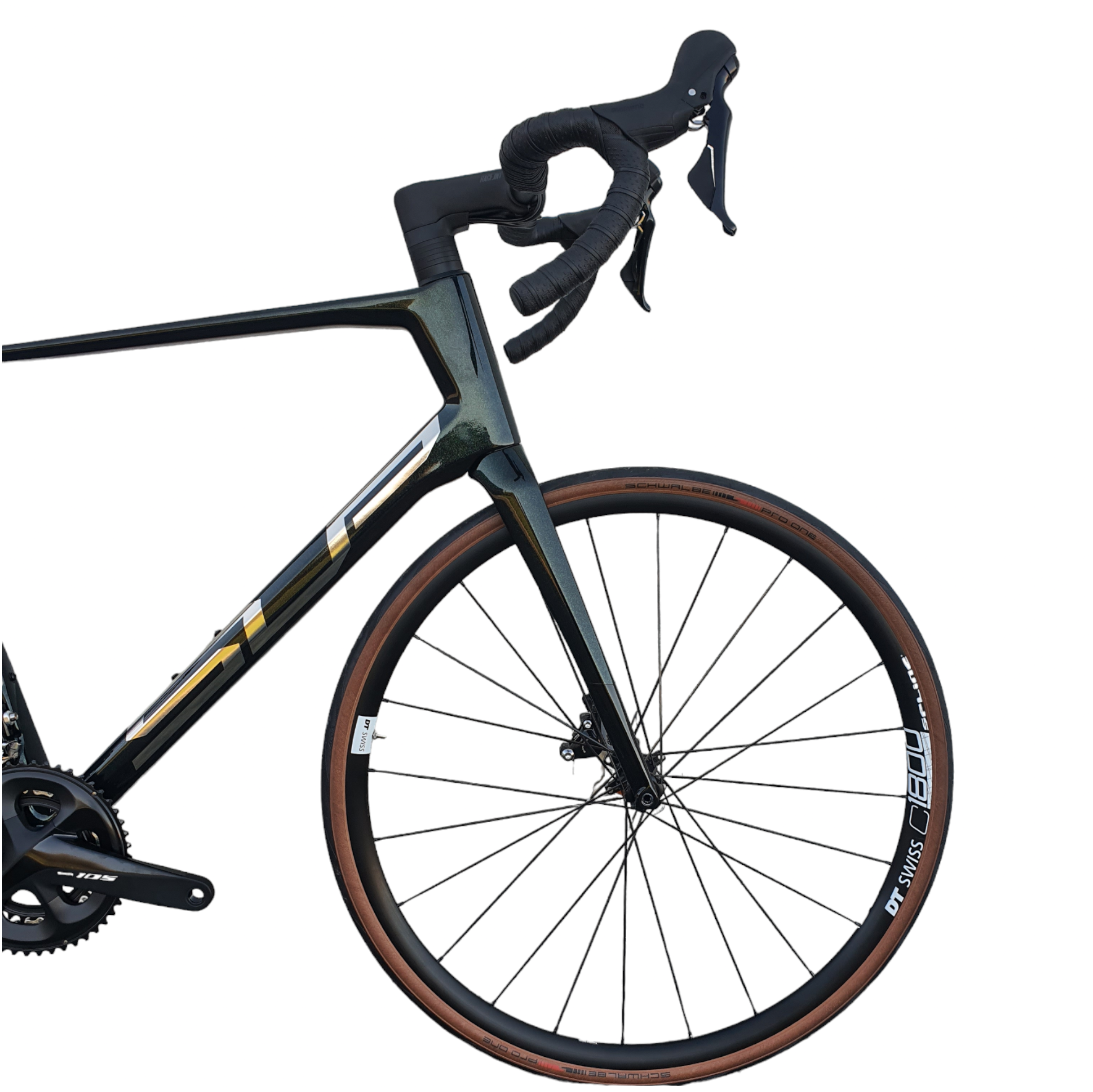 Wyścigową ramę z włókna węglowego wyposażyliśmy w ekonomiczny zestaw szosowy Shimano 105. Komfort zapewniają lekkie koła w oplocie DT Swiss i opony Schwalbe o szerokości 30 mm. Dzięki technologii ICR (Internal Cable Routing) nie zobaczysz ani jednego kabla na rowerze. Docenisz także karbonową sztycę z siodełkiem Fizi:k. Dzięki przepuszczalności ramy opony do szerokości 40 mm oraz przemyślanym detalom, takim jak ukryte punkty mocowania błotników, z roweru można korzystać praktycznie przez cały rok.